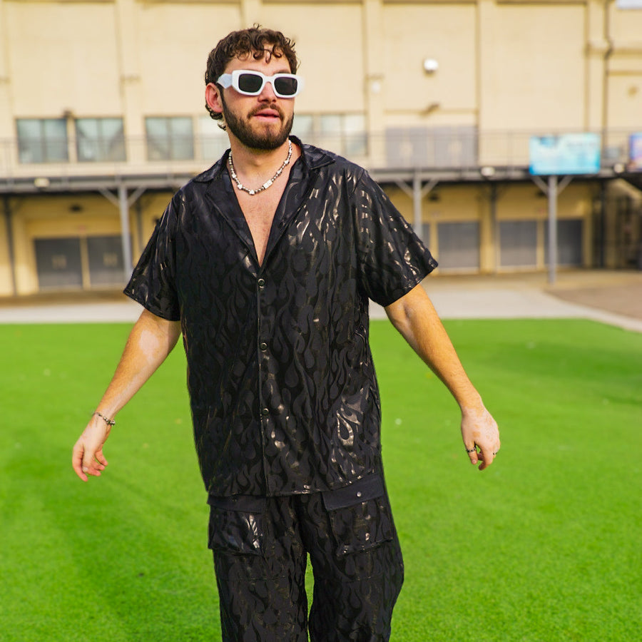 Lightweight, bold, and made for movement — this button-down brings just the right amount of chaos to your fit. Wear it open, buttoned, layered, or tied around your waist when the beat drops. The relaxed fit keeps you cool in the crowd, while the prints do all the talking.